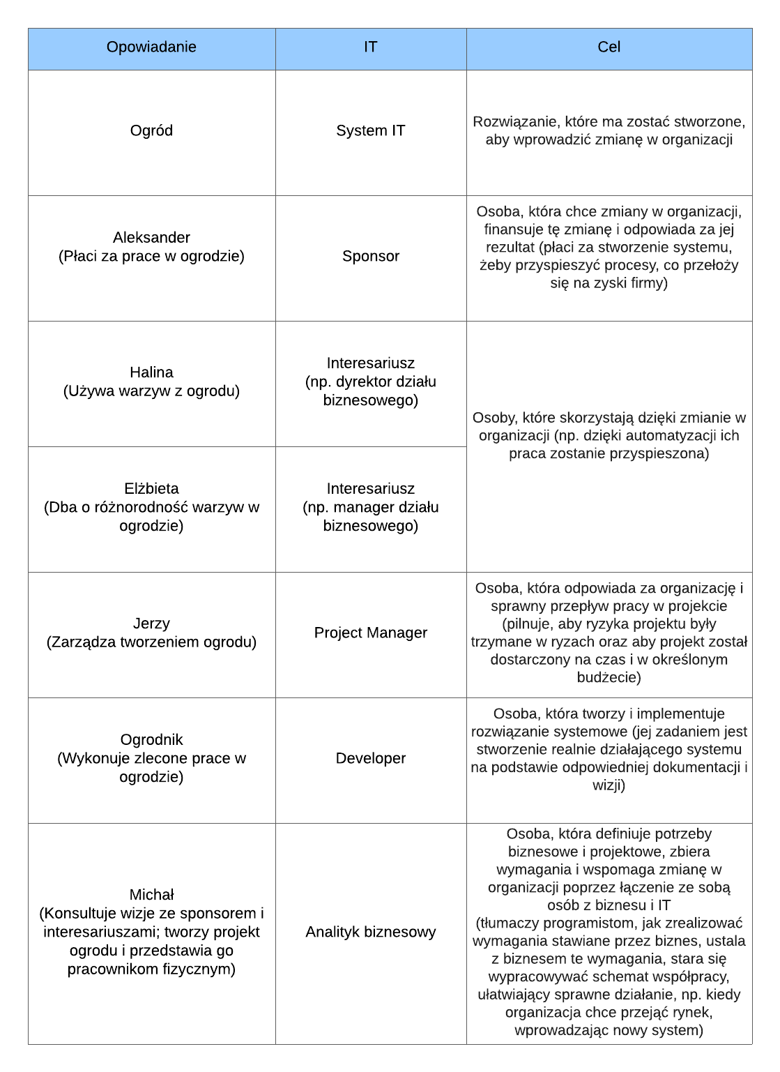Tabela 1. Role uczestników projektu (kliknij w tabelę, aby powiększyć)