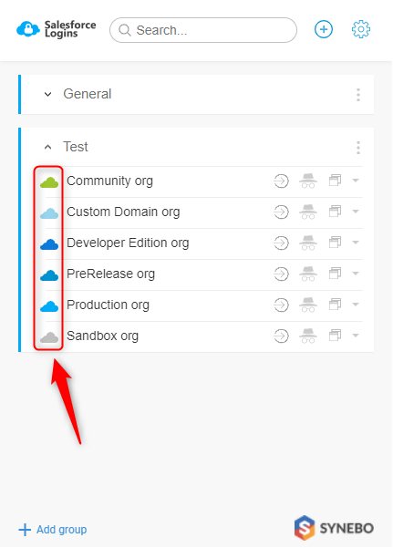 - typy Salesforce org (każdy typ ma inny kolor ikony ‘chmurki’, dzięki czemu łatwiej je rozpoznać ?)