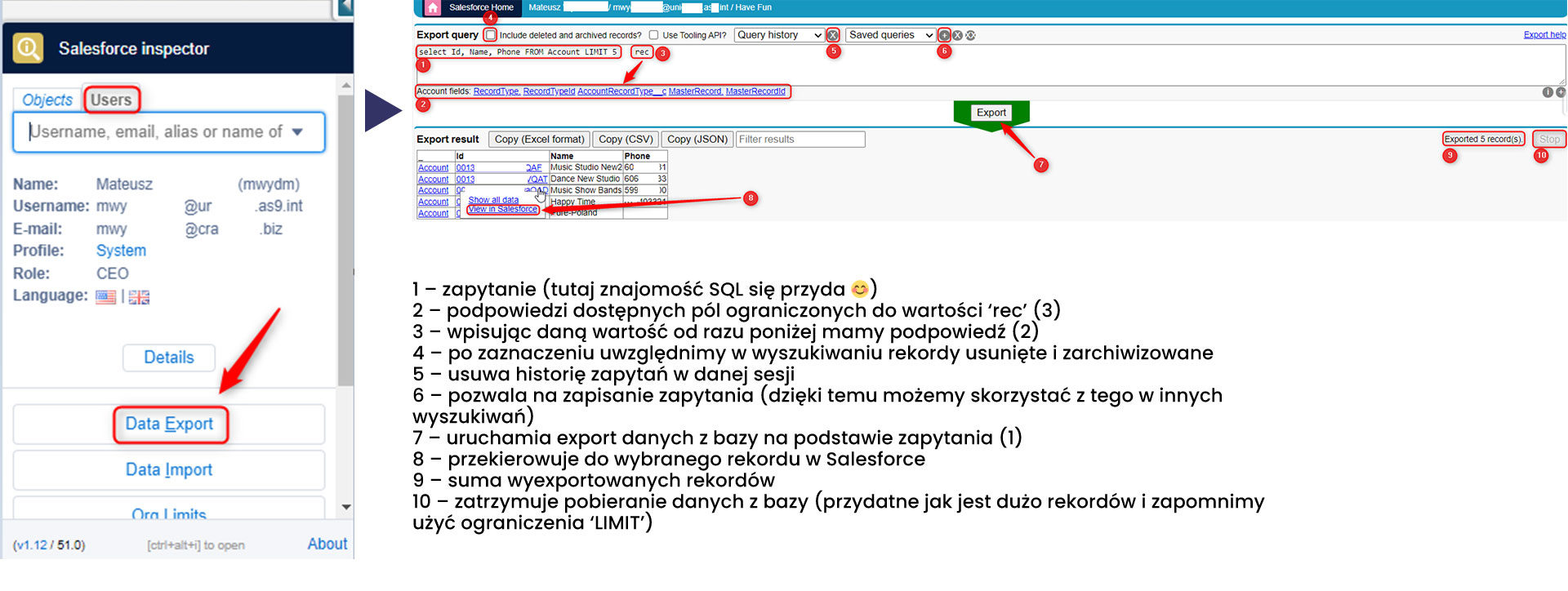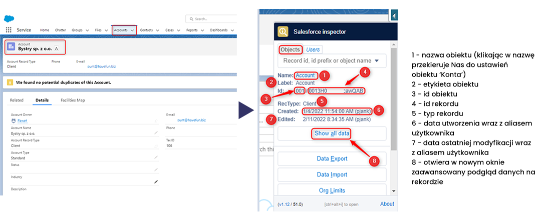 ? Możemy też otworzyć Salesforce Inspector za pomocą skrótu klawiszowego Alt + I